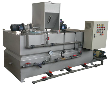 The dosing device is a complete system designed to inject chemical solutions into various processes. It enables the precise addition of both solid and liquid chemicals. The system features a metering pump as the primary dosing equipment and integrates various components such as a solution tank, agitator, level gauge, safety valve, check valve, pressure gauge, filter, buffer, piping, valves, base, ladder, automatic monitoring system, and electrical control system into a skid-mounted unit.